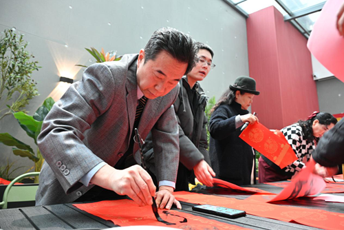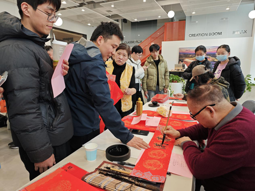 活動(dòng)當(dāng)天,鄭州市文聯(lián)的書(shū)法家們受邀來(lái)到現(xiàn)場(chǎng)。他們個(gè)個(gè)精神飽滿,手執(zhí)毛筆,在一張張紅紙上揮灑自如,書(shū)寫著寓意深遠(yuǎn)的新年序言。這些序言既是對(duì)過(guò)去一年的總結(jié),也是對(duì)新年的美好期許。書(shū)法家們的精彩表演贏得了現(xiàn)場(chǎng)觀眾的連連稱贊,租戶們紛紛表示:“書(shū)法家們寫的字真是太好了!‘福’字看著就喜慶,春聯(lián)的寓意也都非常美好。”