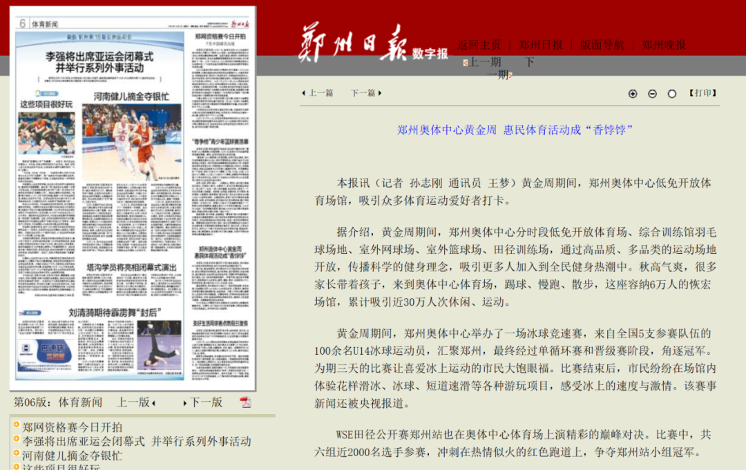 雙節(jié)黃金周期間,為豐富廣大市民假期出游選擇,鄭州奧體中心根據(jù)群眾喜聞樂見的休閑娛樂活動(dòng),充分發(fā)揮場館優(yōu)勢,開展場館低免開放、國際車展、運(yùn)動(dòng)賽事等一系列豐富多彩的惠民文體活動(dòng),在小長假期間,累計(jì)吸引近30萬人次來到鄭州奧體中心打卡精彩活動(dòng),受到央視新聞?lì)l道、河南廣播電視臺(tái)、鄭州廣播電視臺(tái)、鄭州日?qǐng)?bào)等官方媒體爭相報(bào)道。