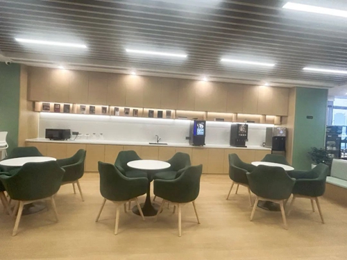 園區(qū)餐廳:規(guī)劃公共就餐區(qū)、卡座就餐區(qū)、餐包就餐間等,可容納約1000人同時就餐,滿足各類用餐需求