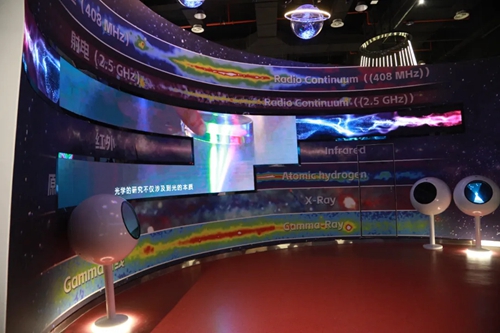 最夢(mèng)幻的是“追光之旅”展廳。一進(jìn)這個(gè)展廳,仿佛能沉浸式體驗(yàn)星際穿越的樂趣。這里打破單純講解理論知識(shí)和科學(xué)現(xiàn)象的傳統(tǒng)模式,用講故事的方式串聯(lián)起相關(guān)展項(xiàng),讓整個(gè)展廳形成一套完整的故事體系,生動(dòng)還原了科學(xué)探索的過程。追光之旅的旅程是回答“光是什么?”的過程,在這個(gè)過程中我們通過“認(rèn)識(shí)光的傳播”“駕馭光的路徑”“探索光的本質(zhì)”“運(yùn)用光的新知”四個(gè)分主題帶領(lǐng)觀眾了解光學(xué)的發(fā)展歷程。