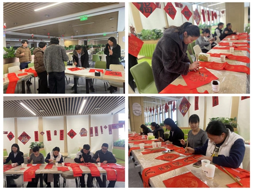 在這如詩如畫的美好時(shí)刻,我們以一副春聯(lián)凝聚夢想的光輝,迎接新春的腳步?;顒右潦?,來自城發(fā)產(chǎn)城公司工程設(shè)計(jì)部的張馨友老師現(xiàn)場揮毫潑墨,他的筆下,每一劃都似春風(fēng)拂面,每一點(diǎn)都像細(xì)雨潤心,將美好的愿景與溫暖的問候融入到那一幅幅靈動的字跡之中。與此同時(shí),活動現(xiàn)場精心準(zhǔn)備了豐富的書寫工具,這里,不僅是紙墨交融的地方,更是心靈交匯、智慧碰撞的空間,在揮灑筆墨的過程中體驗(yàn)到了傳統(tǒng)文化的獨(dú)特魅力。