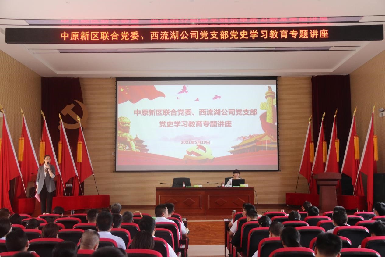 黨史是最好的教科書和營養(yǎng)劑,在中國共產(chǎn)黨成立100周年之際,為扎實(shí)開展好黨史學(xué)習(xí)教育,引導(dǎo)廣大黨員干部職工知史愛黨、知史愛國,進(jìn)一步樹牢“四個意識”、堅(jiān)定“四個自信”、做到“兩個維護(hù),推動黨史學(xué)習(xí)教育取得實(shí)效,5月19日下午,中原新區(qū)聯(lián)合黨委、西流湖公司黨支部邀請河南省委黨校黨史教研部副主任、副教授楚向紅老師開展黨史學(xué)習(xí)教育專題講座。公司領(lǐng)導(dǎo)班子、西流湖公司、鄭地發(fā)展以及中原新區(qū)聯(lián)合黨委黨員職工代表共計(jì)150余人參加講座。