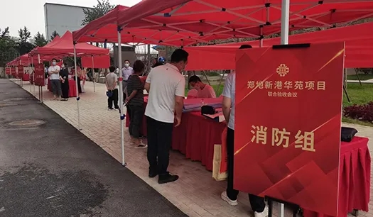 鄭地新港華苑項目于2021年8月26日下午,順利完成由鄭州市城建局牽頭組織,人防、消防、質(zhì)監(jiān)、規(guī)劃等部門共同參與的聯(lián)合驗收,是疫情期間第一個通過聯(lián)合驗收的建設項目。為嚴格落實鄭州市新冠肺炎疫情的防控要求,新港華苑項目部提前制定了周密的疫情防控方案,采取了妥善的疫情防控措施,有序組織進入院區(qū)人員掃健康碼、檢查48小時核酸檢測結果、測量體溫、酒精消殺、分發(fā)防疫包等。經(jīng)過啟動儀式、書面匯報、現(xiàn)場巡查、聯(lián)動測試等環(huán)節(jié),鄭地新港華苑項目順利完成聯(lián)合驗收工作。
